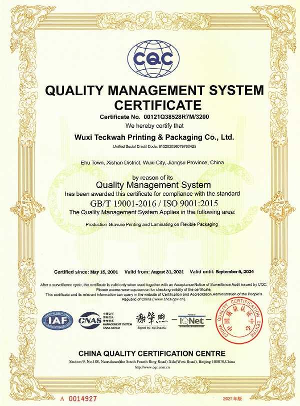 质量管理体系认证证书